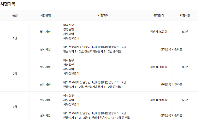 필기교재는 시대고시에서 나온 '한 권으로 끝내기-비서 2,3급'으로 봤다. 난이도 낮고, 인지도 낮지만 의외로 비서직종 이외에서는 특별하게 생각하기도 하는 국가기술자격증이다. 실질적인 비서업무와는 조금 차이가 있을 수 있지만 기본이론은 어느 정도 알 수 있다. 수험준비를 하면서 비서실무 외에도 경영일반, 사무영어, 사무정보관리 등 사무직종에 근무하면서 도움이 될만한 과목들로 구성되어 있어직장생활에 필요한 소소한 팁들을 많이 알게 되었다.