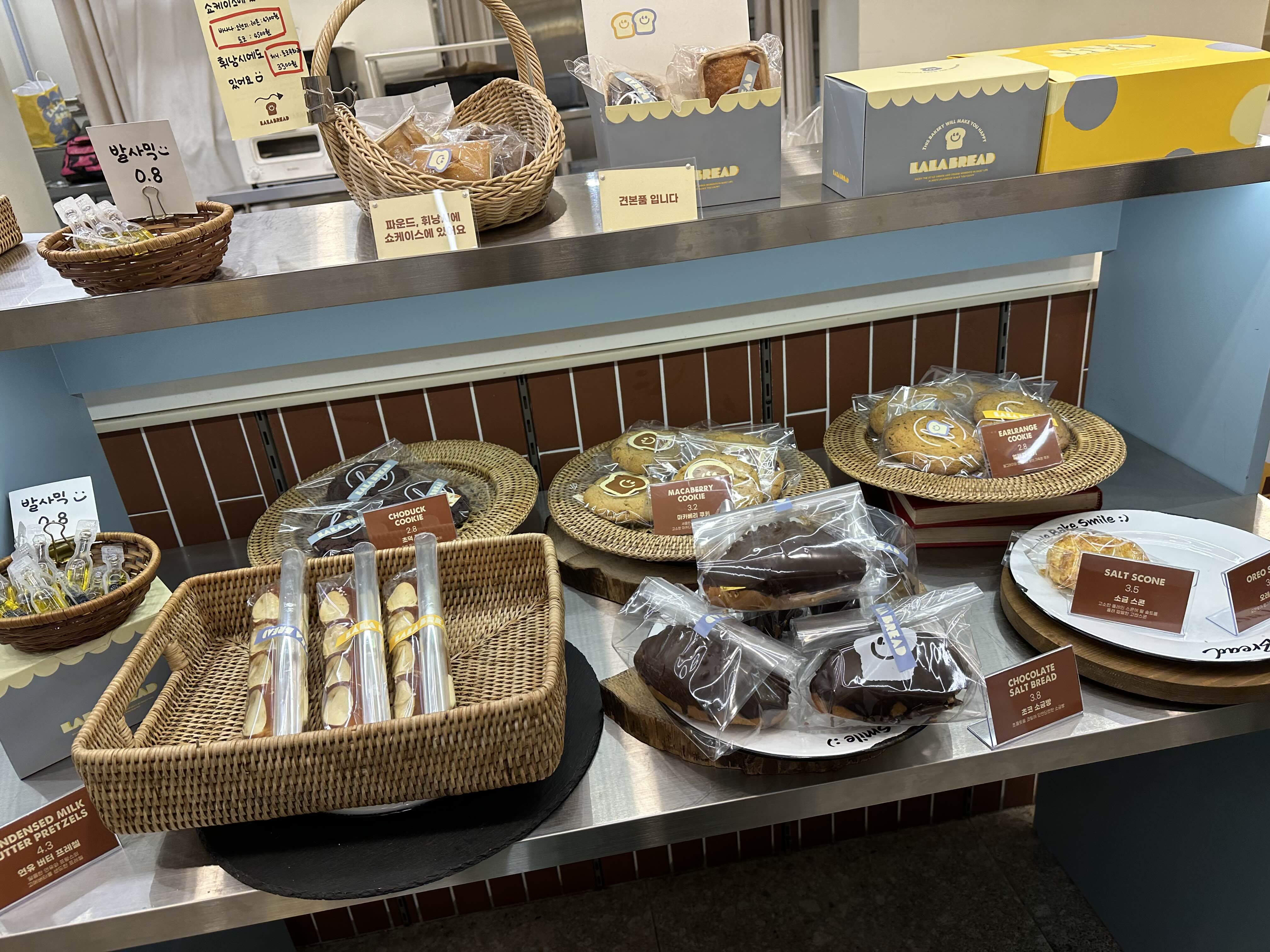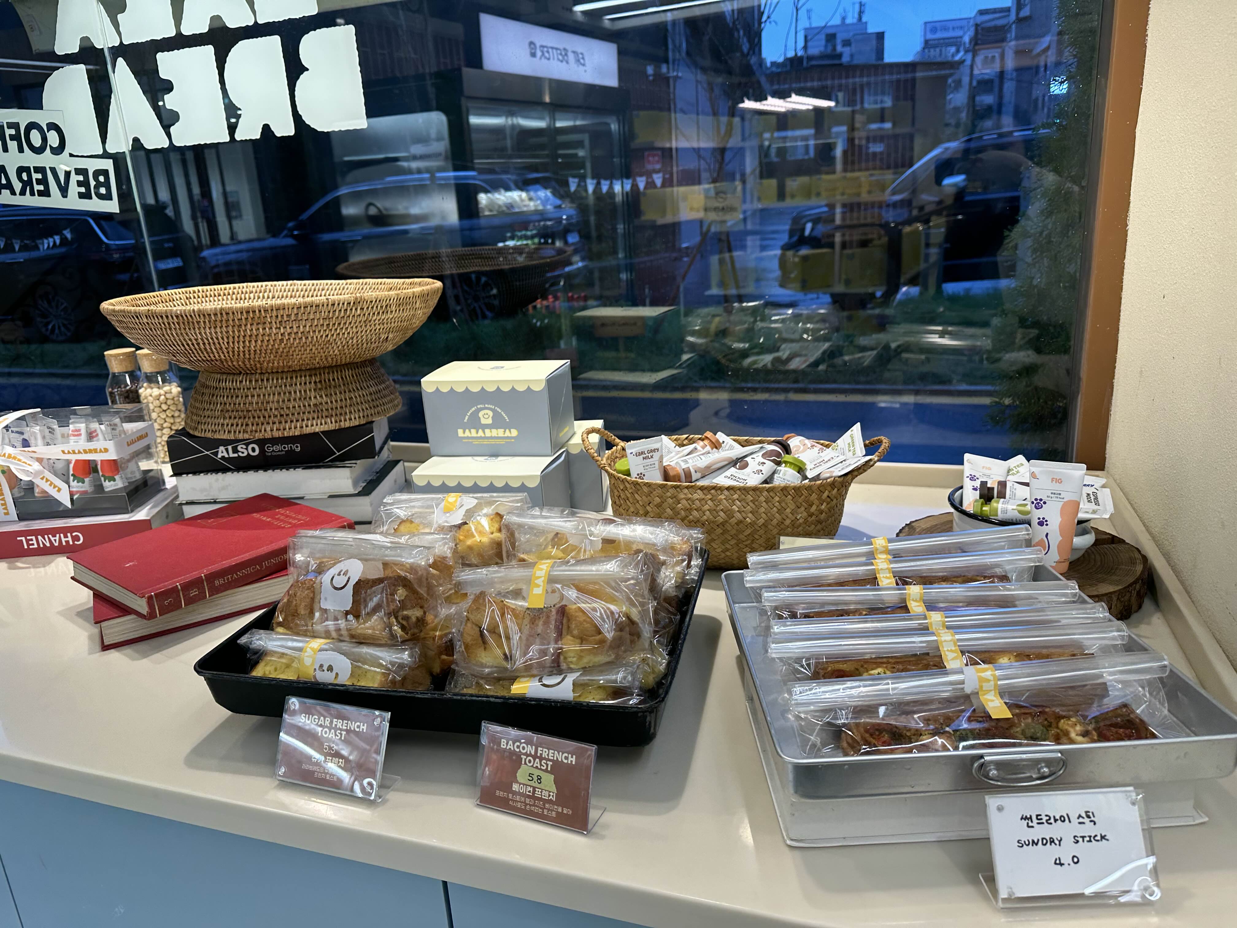 종류도 많고, 보기만 해도 군침 도는 빵들이 잔뜩 있었어요. 그중에서도 라라브레드의 시그니처 메뉴인 대파 불고기 바게트. 생각보다 가격도 착해서 다이어트만 아니었으면 바로 살 뻔했어요.