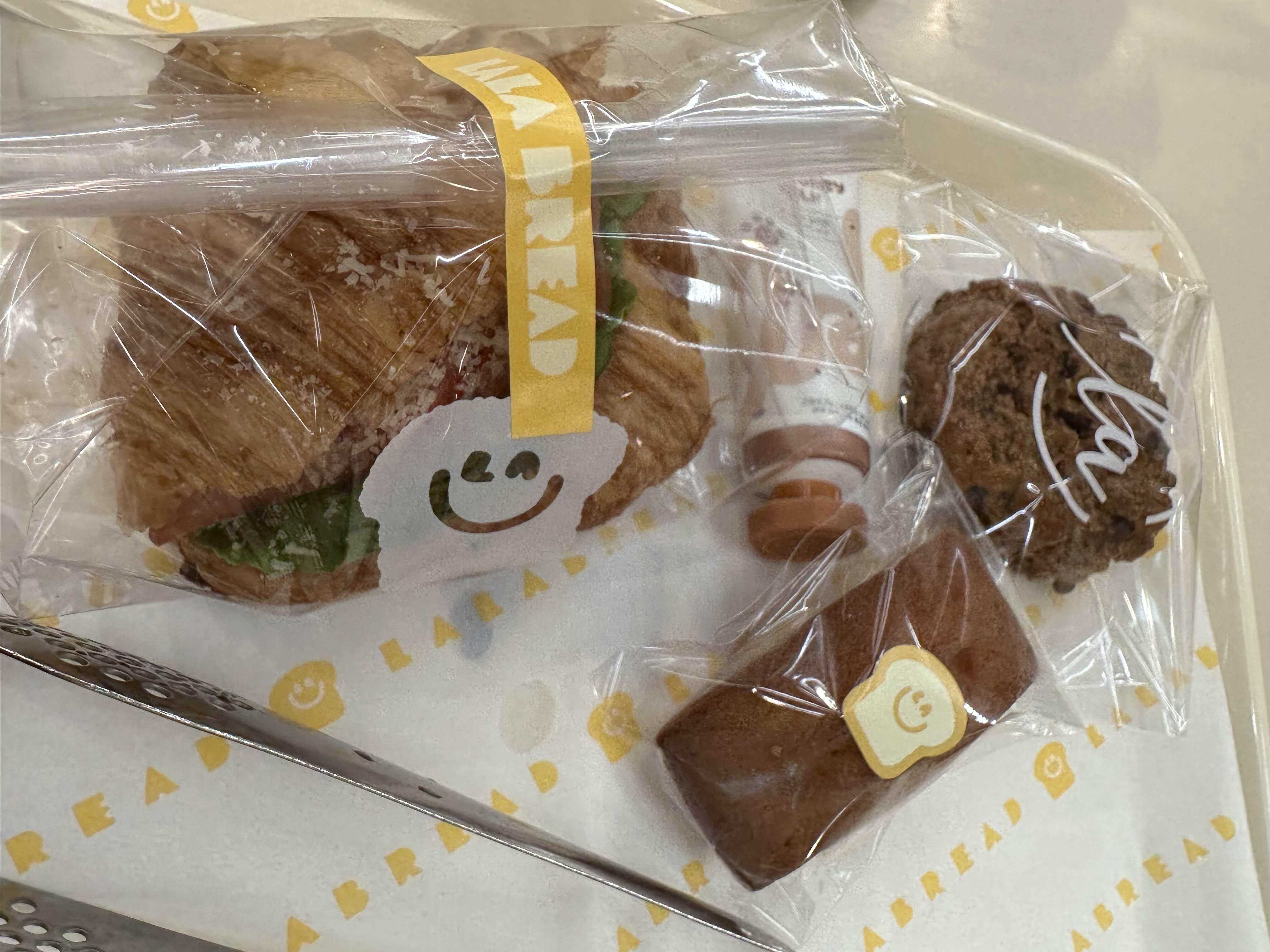 크로와상 샌드위치와 얼그레이 잼(튜브), 휘낭시에, 쿠키를 골랐습니다. 매장을 꼼꼼하게 구경하고 어떤 것을 살 지 곰곰이 고민한 결과물입니다. 야근하며 먹기 딱 좋은 구성이라 만족해요. 요즘은 간편하게 가볍게 먹기 좋은 구움 과자들이 좋아졌어요. 오늘의 빵 구매는 대만족입니다.